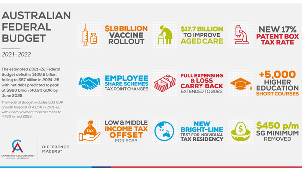 The Federal Budget includes bold GDP growth forecast of 4.25% in 2021-22 with unemployment forecast to fall to 4.75% in mid 2023.